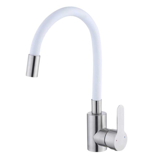 Baterie din inox pentru bucătărie, pipa flexibilă, Aquafix - 404, albă..