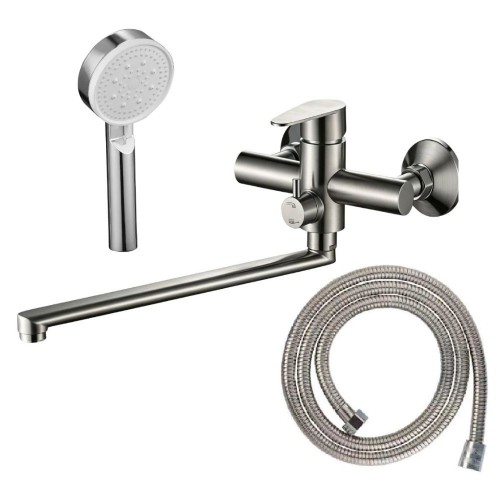 Set baterie cadă, pipa lungă, cu pară și furtun, Aquafix - 120, satin..