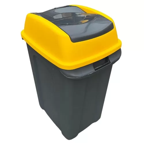 Coș gunoi fără roți, HIPPO, 70 L, Antracit/Galben
