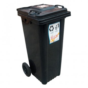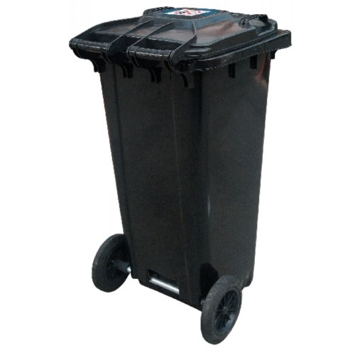 Tomberon din plastic cu roți și capac, 120 L, Negru